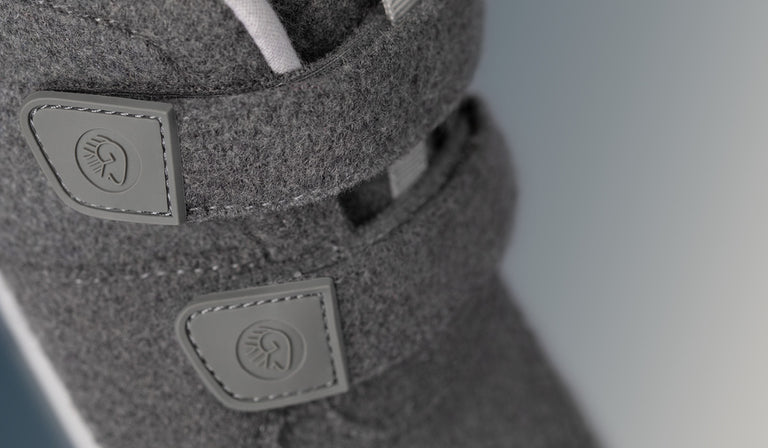 Hinten an der Ferse und oben an der Zunge ist eine Schlaufe, damit kann der Schuh sehr einfach angezogen werden. So klappt das Anziehen ganz schnell, auch ohne Hilfe!